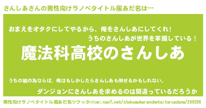 | 女子向けラノベタイトル風あだ名 | 『さんしあなんてお断りですっ。』 |