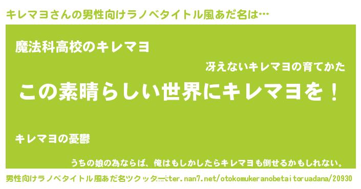 | 胡散臭い通販商品みたいなあだ名 | 『あなたにだけ特別に提供する限定10本のレアな日本酒…その名も「キレマヨ」』 |