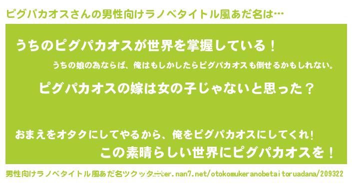 | 女子向けラノベタイトル風あだ名 | 『ピグパカオス様がみてる』 |