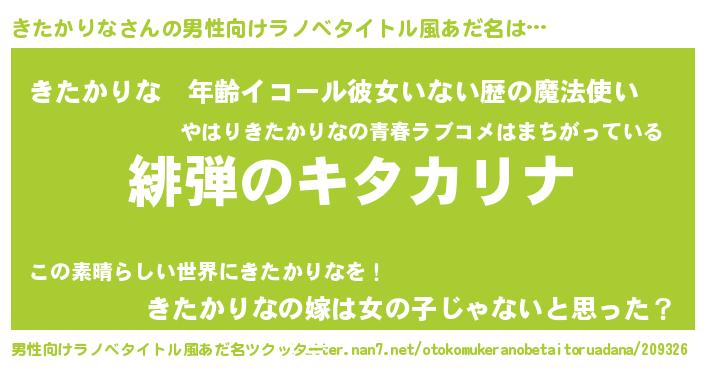 | ヒーロー風カッコイイあだ名 | 『暗黒騎士キタ』『仮面キタダー』 |