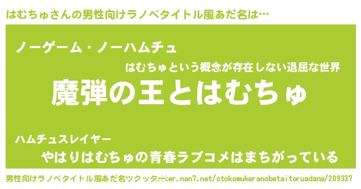 | 意味不明あだ名 | 『住所不定無職はむちゅ(1歳)』 |