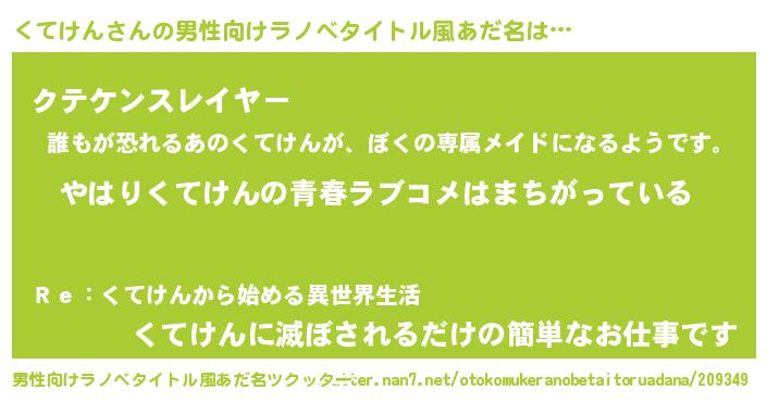 | 女子向けラノベタイトル風あだ名 | 『くてけん伯爵の花嫁』 |