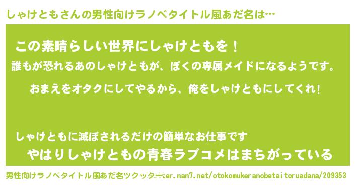 | ヒーロー風カッコイイあだ名 | 『友情の使者しゃけとも』『仮面シャダー』 |
