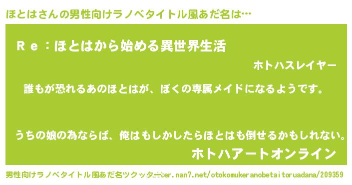 | 女子向けラノベタイトル風あだ名 | 『異世界でカフェほとはを開店しました。』 |