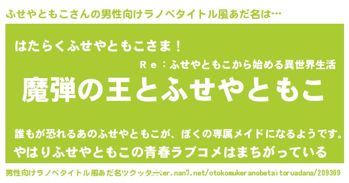 | 意味不明あだ名 | 『住所不定無職ふせやともこ(77歳)』 |