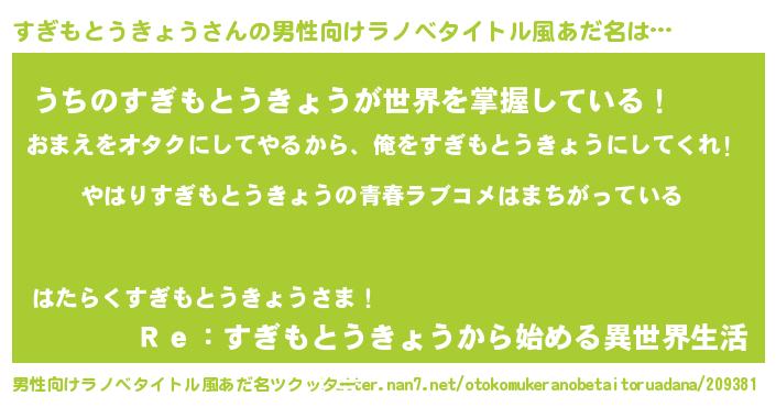 | ファンタジー風あだ名 | 『エターナルスギモトウキョウー』 |