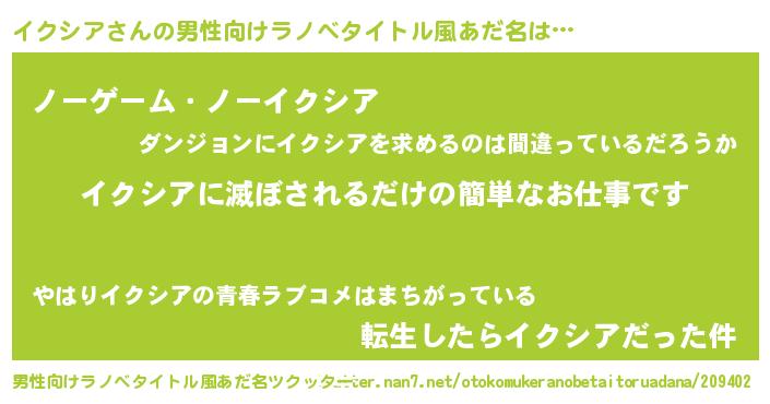 | ヒーロー風カッコイイあだ名 | 『天空の使者イクシア』『銀牙騎士イク』 |