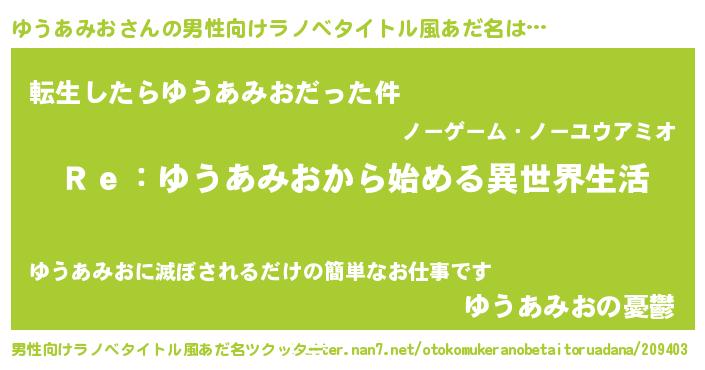 | 肩書あだ名 | 『ゆうあみお閣下』『ゆうあみお少尉』 |