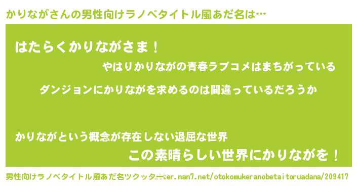 | 女子向けラノベタイトル風あだ名 | 『かりながは平凡を望む』 |