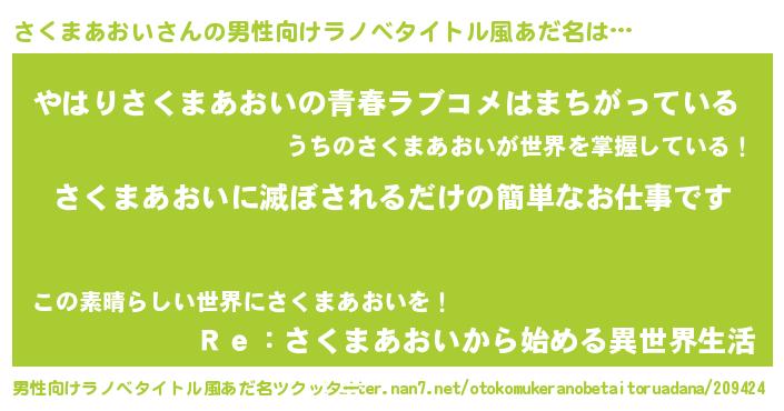 | ファンタジー風あだ名 | 『エターナルサクマアオイー』 |