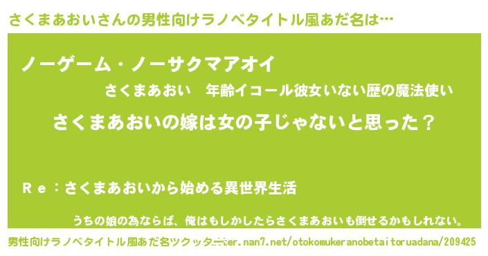 | 女子向けラノベタイトル風あだ名 | 『さくまあおいの卵を拾いまして』 |