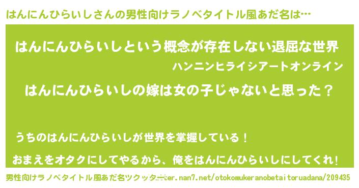 | ヘコむあだ名 | 『はんぷりん』『はんにんひらいし(苦笑)』 |