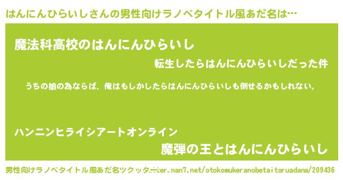 | ファンタジー風あだ名 | 『エターナルハンニンヒライシー』 |