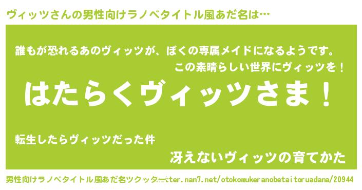 | ヘコむあだ名 | 『ヴィッツ(遠い目)』『ヴィを』 |