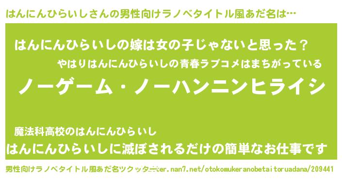 | ポケモン風あだ名 | 『ハックウザ』『ヒハンニンヒライシ』 |