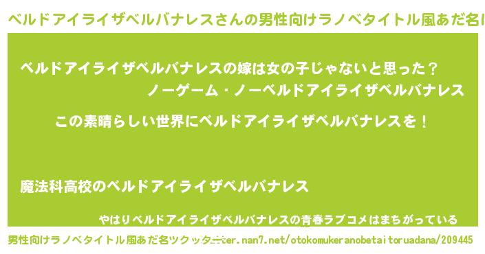 | 女子向けラノベタイトル風あだ名 | 『悪役ベルドアイライザベルバナレスに転生したようですが、知った事ではありません』 |