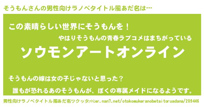 | 胡散臭い通販商品みたいなあだ名 | 『億万長者になれる水晶球…その名も「そうもん」』 |