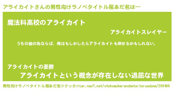 | ファンタジー風あだ名 | 『エターナルアライカイトー』 |