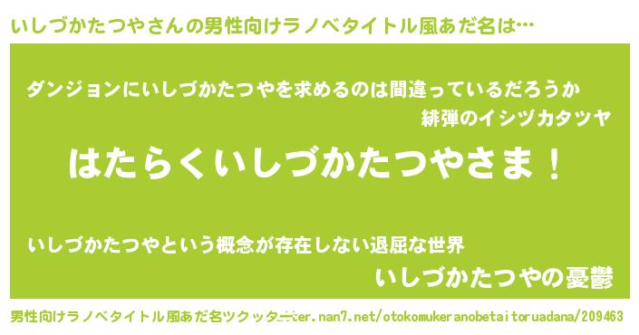 | 意味不明あだ名 | 『とにかく怪しいいしづかたつや』 |