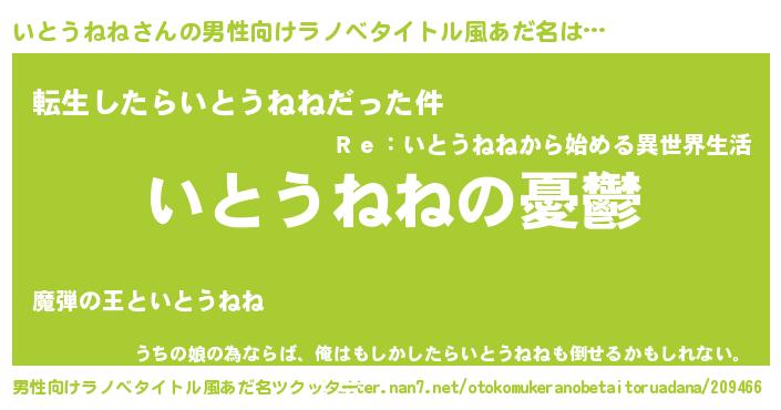 | 胡散臭い通販商品みたいなあだ名 | 『モテモテ間違いなし霊験あらたかなお札…その名も「いとうねね」』 |