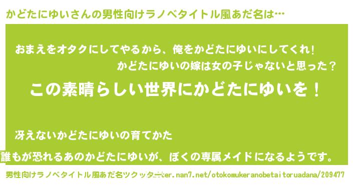 | 女子向けラノベタイトル風あだ名 | 『悪役かどたにゆいに転生したようですが、知った事ではありません』 |