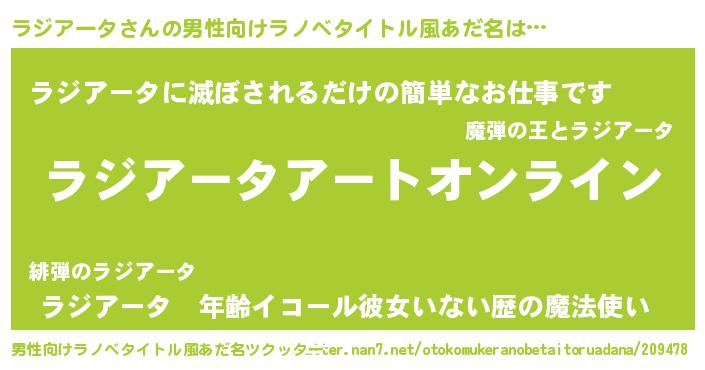| 胡散臭い通販商品みたいなあだ名 | 『モテモテ間違いなし霊験あらたかなお札…その名も「ラジアータ」』 |