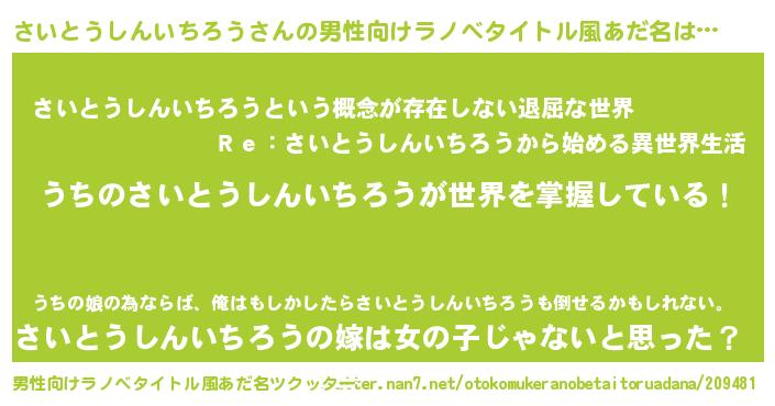| 意味不明あだ名 | 『永久保存さいとうしんいちろう』 |