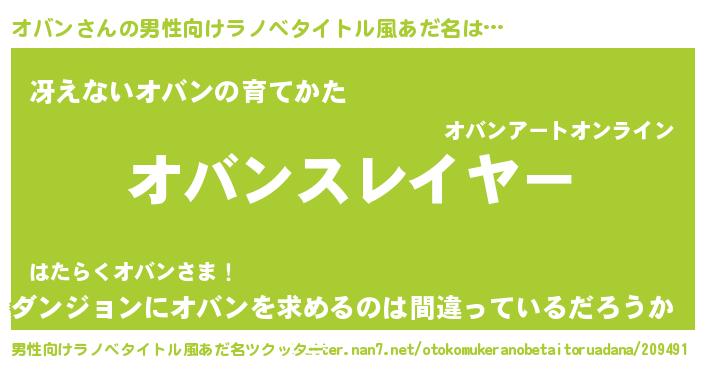 | 胡散臭い通販商品みたいなあだ名 | 『信頼と実績のサプリメント…その名も「オバン」』 |