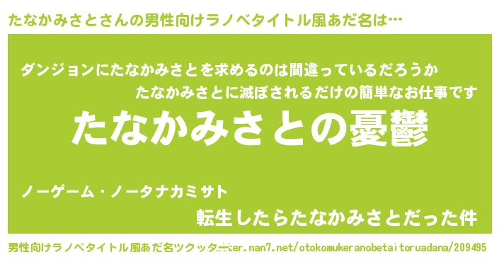 | 女子向けラノベタイトル風あだ名 | 『(仮)たなかみさとのやんごとなき事情』 |