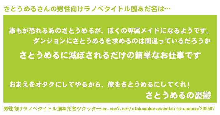 | 意味不明あだ名 | 『永久保存さとうめる』 |