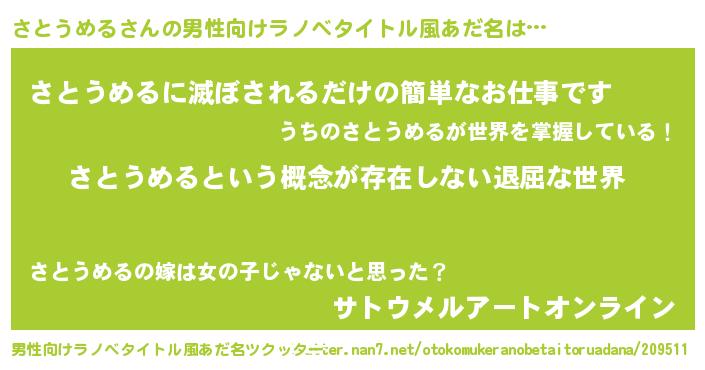 | 胡散臭い通販商品みたいなあだ名 | 『来世でも幸せになれる健康食品…その名も「さとうめる」』 |