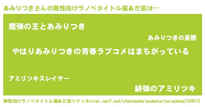 | 女子向けラノベタイトル風あだ名 | 『あみりつきの雑貨屋さん』 |