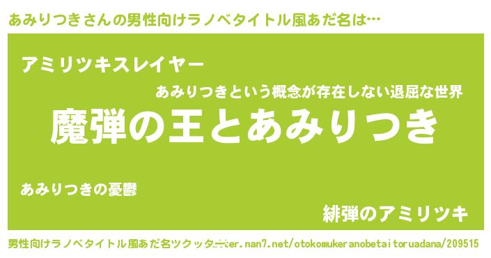 | 意味不明あだ名 | 『住所不定無職あみりつき(2歳)』 |