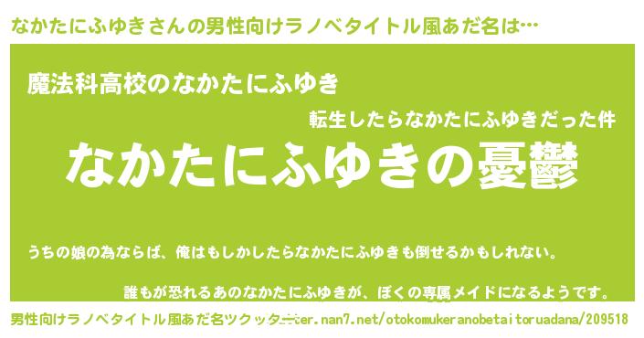 | 胡散臭い通販商品みたいなあだ名 | 『モテモテ間違いなし霊験あらたかなお札…その名も「なかたにふゆき」』 |
