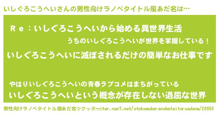 | 意味不明あだ名 | 『自称いしぐろこうへい』 |