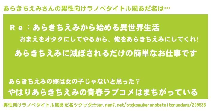 | 意味不明あだ名 | 『自称あらきちえみ』 |