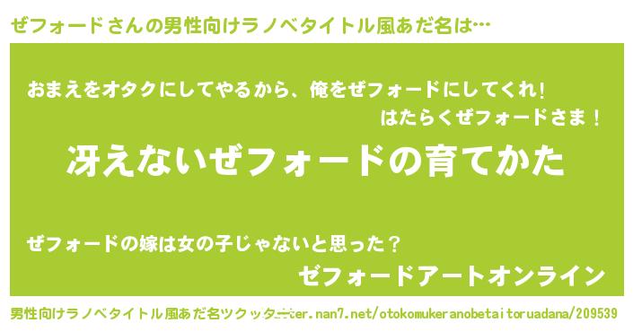 | 女子向けラノベタイトル風あだ名 | 『男装ぜフォードの憂鬱な任務』 |