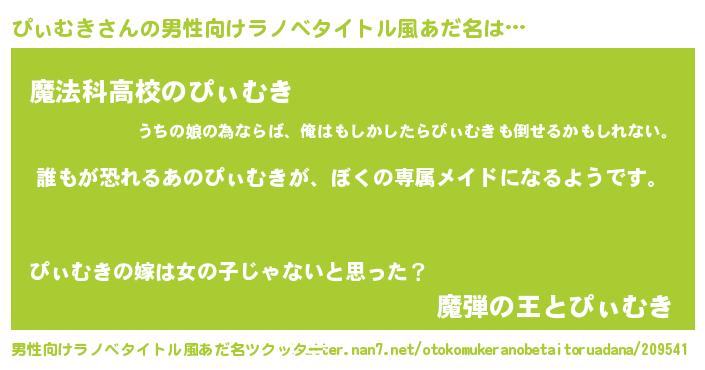 | ヘコむあだ名 | 『ぴぃむき(笑)』『牛乳』『ぴぃにー』 |