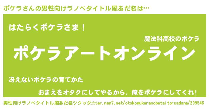 | 女子向けラノベタイトル風あだ名 | 『ポケラ姫と円卓の騎士』 |