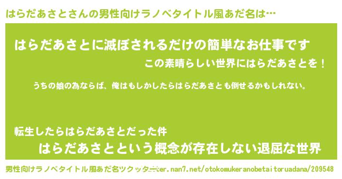 | 胡散臭い通販商品みたいなあだ名 | 『運命の人と巡り会える高級そうな絵画…その名も「はらだあさと」』 |