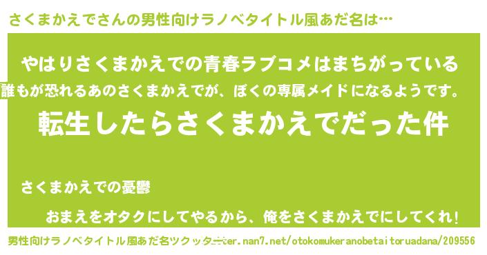 | 女子向けラノベタイトル風あだ名 | 『さくまかえでの玉の輿計画!』 |