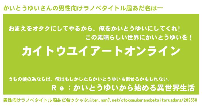 かいとうゆいさんの男性向けラノベタイトル風あだ名をツクッター!