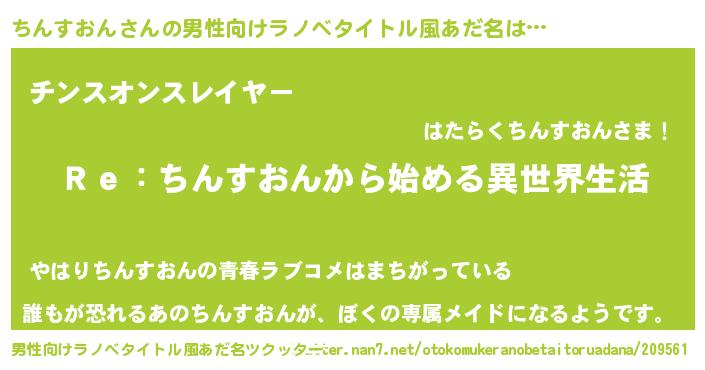 | 女子向けラノベタイトル風あだ名 | 『ちんすおんストレイドッグス』 |