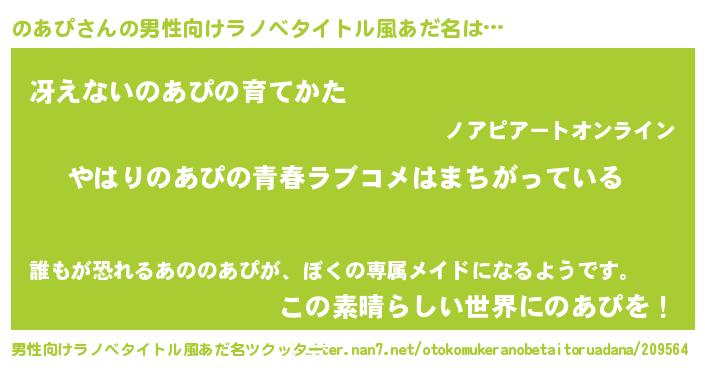 | 女子向けラノベタイトル風あだ名 | 『のあぴ伯爵の花嫁』 |