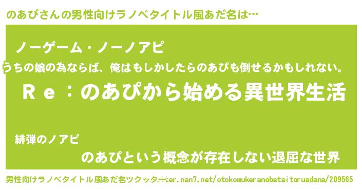 | ヒーロー風カッコイイあだ名 | 『究極戦士ノアピ』『愛の使者のあぴ』 |