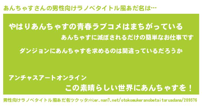 | 女子向けラノベタイトル風あだ名 | 『あんちゃすは平凡を望む』 |