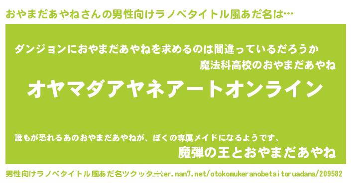 | 胡散臭い通販商品みたいなあだ名 | 『億万長者になれる霊験あらたかなお札…その名も「おやまだあやね」』 |