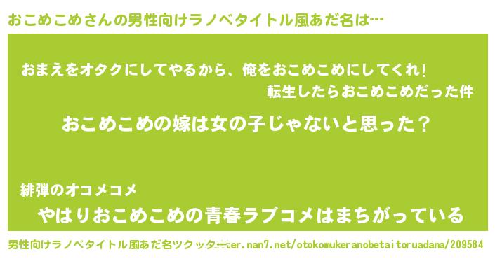 | 胡散臭い通販商品みたいなあだ名 | 『伝統あるサプリメント…その名も「おこめこめ」』 |