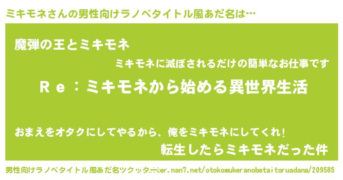 | 女子向けラノベタイトル風あだ名 | 『ミキモネストレイドッグス』 |