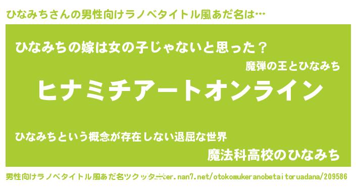 | 女子向けラノベタイトル風あだ名 | 『誰かこのひなみちを説明してください! ~契約から始まるウェディング~』 |